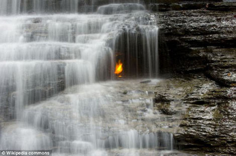Ngọn lửa ở thác Enternal Flame, New York. Ảnh: Dailymail
