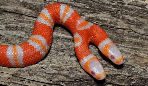 Vào hồi tháng 11/2011, các nhà sinh vật học tại Viện nghiên cứu Sunshine Serpents ở bang Florida, Mỹ đã tiến hành ấp 7 quả trứng của loài rắn sữa Honduras. Khi những quả trứng nở, họ phát hiện một con rắn bạch tạng hai đầu.